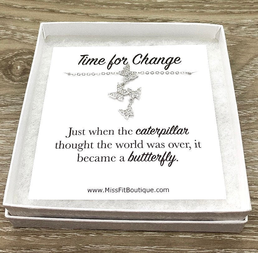 Dainty Butterfly Necklace, New Beginning Necklace, Time for Change, Tiny Butterfly, Silver Cubic Zirconia Jewelry, Birthday, Simple Reminder