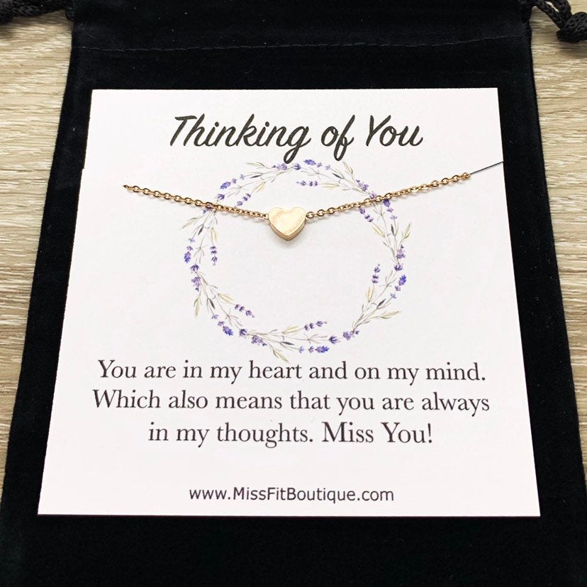 Dainty Heart Necklace, Gift for Friend, Thinking of You Gift, Holiday Jewelry, Personalized Card, Gift for Best Friend, Miss You Gift