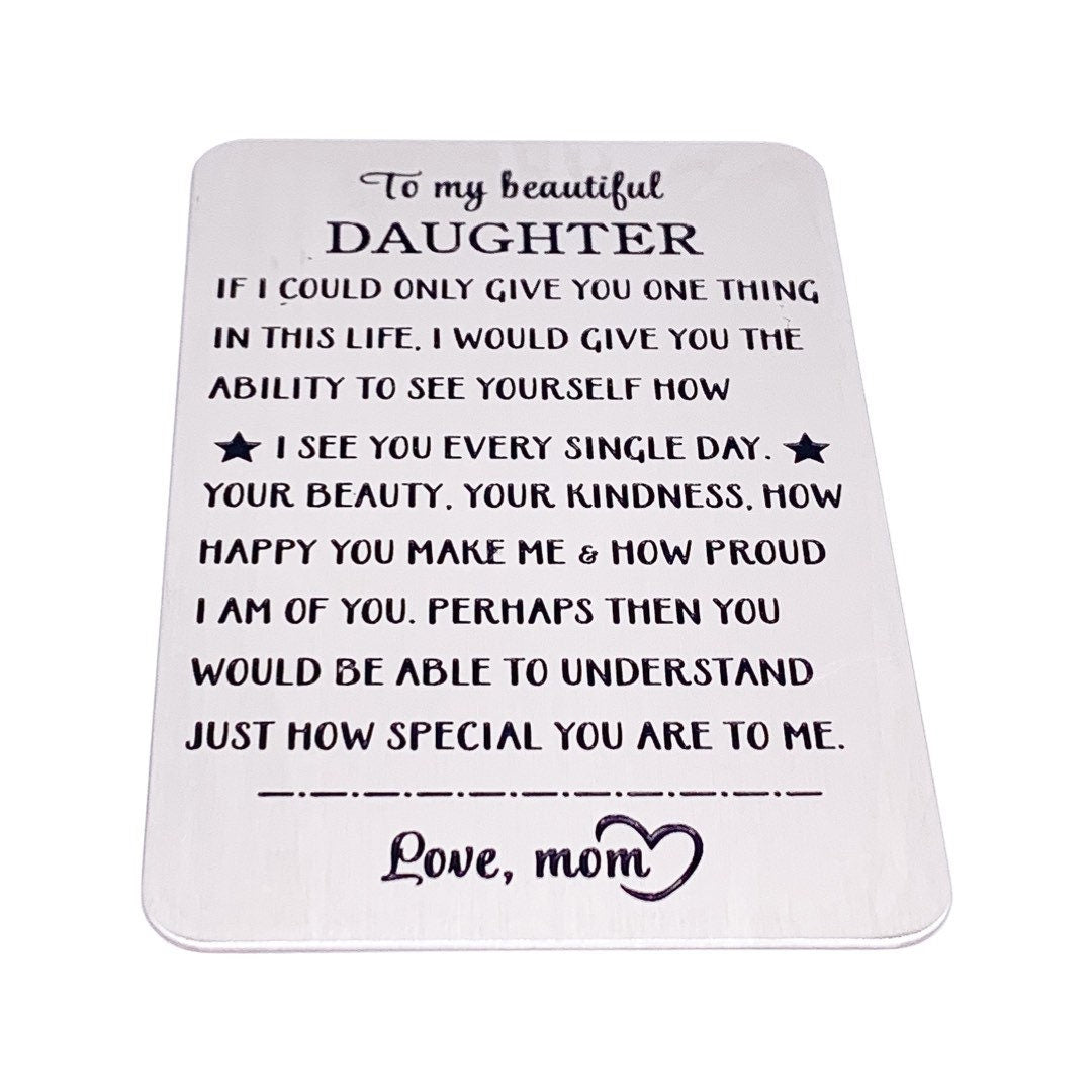 Daughter Wallet Card, Gift from Mom, Stainless Steel, Graduation Gift, Gift for Daughter, Birthday Gift, Simple Reminder, Love Mom