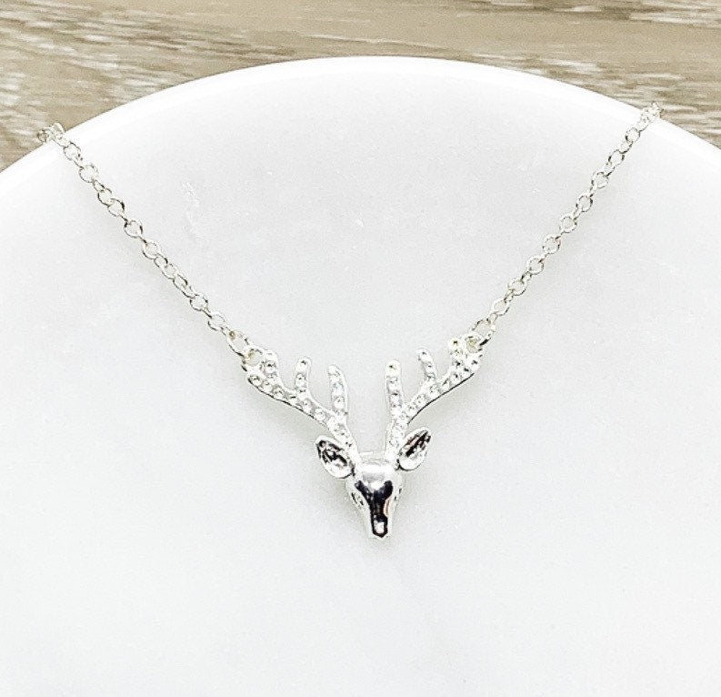Deer Necklace, Wilderness Jewelry, Animal Lover Gift, Reindeer Necklace, Canadian Jewelry, Layering Holiday Necklace, Christmas Gift