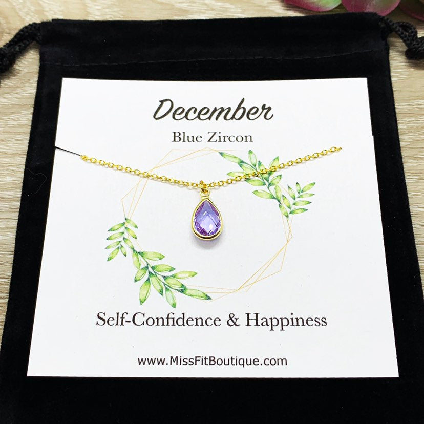 December Birthstone Necklace, Blue Zircon Pendant, Dainty Crystal Charm Necklace, Personalized Birthday Gift for Her, Meaningful Jewelry