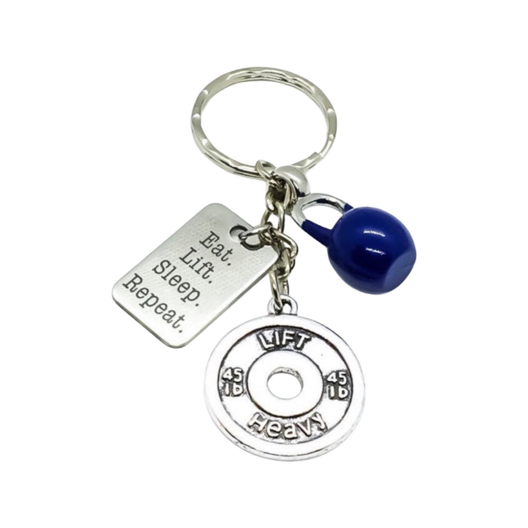 Fitness Mantra Keychain, Train Eat Sleep Repeat, Lift Heavy, Dumbbell Charm, Fitness Gifts, Gifts for Gym Lovers, Gym Keyring, Fitness Coach