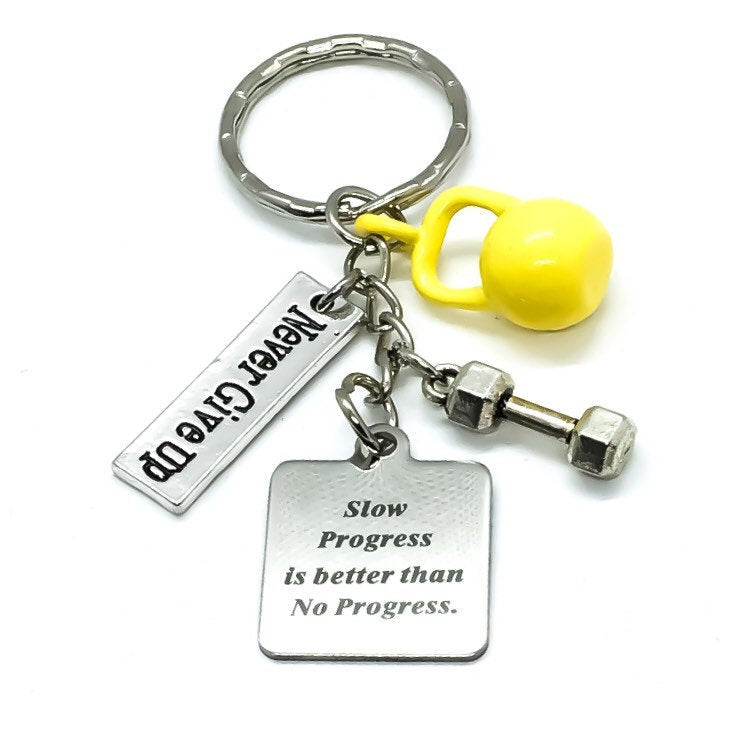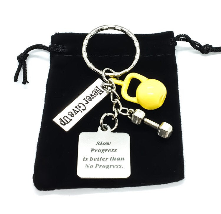 Fitness Keychain, Weightlifting Charm, Slow Progress is Better, Weightloss Motivation, Kettlebell Charm, Personal Trainer, Gym Gift