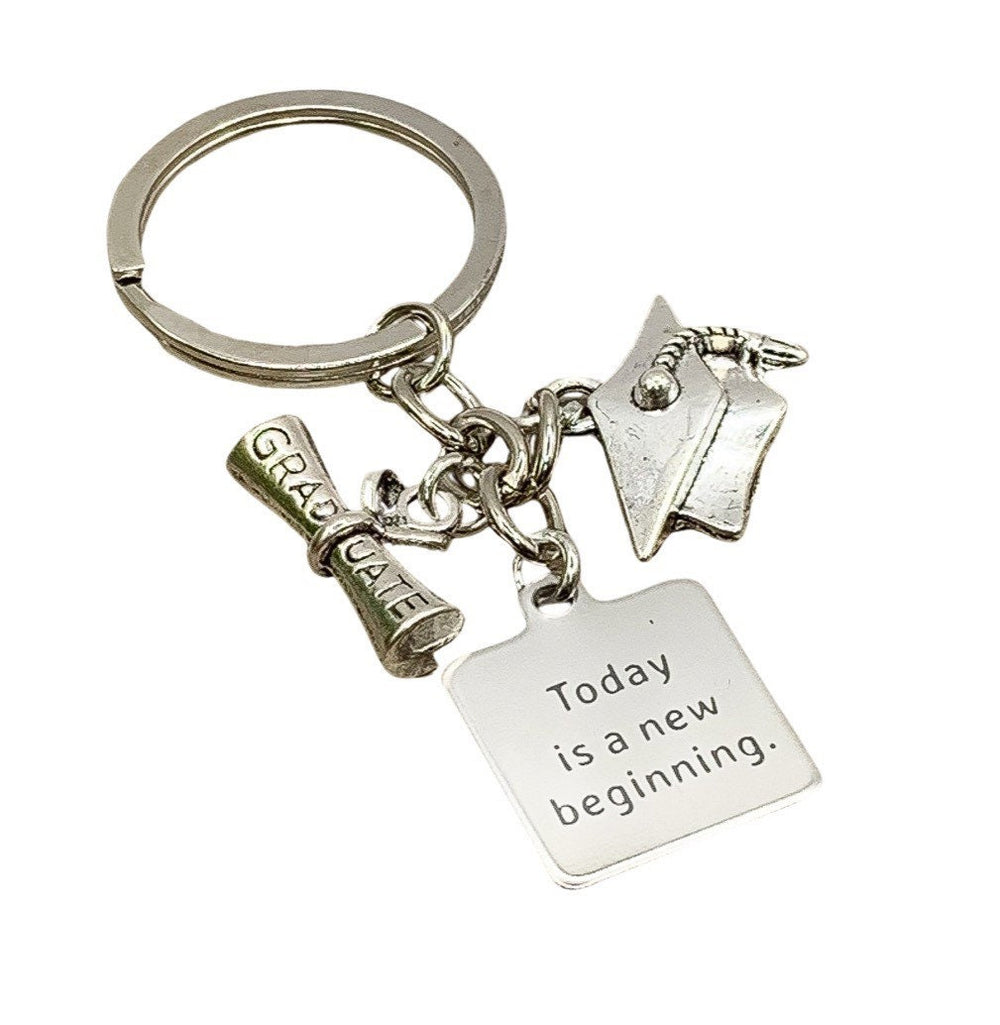 Graduation Keychain, Today is a New Beginning Quote, 2026 Grad Gift for Her, College Graduate Gift, Gift for Son