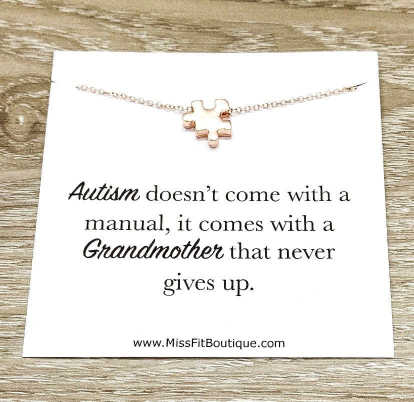 Grandma Necklace, Autism Grandmother Gift, Rose Gold Puzzle Necklace, Silver Puzzle Jewelry, Autism Awareness Necklace, Jigsaw Puzzle Gift