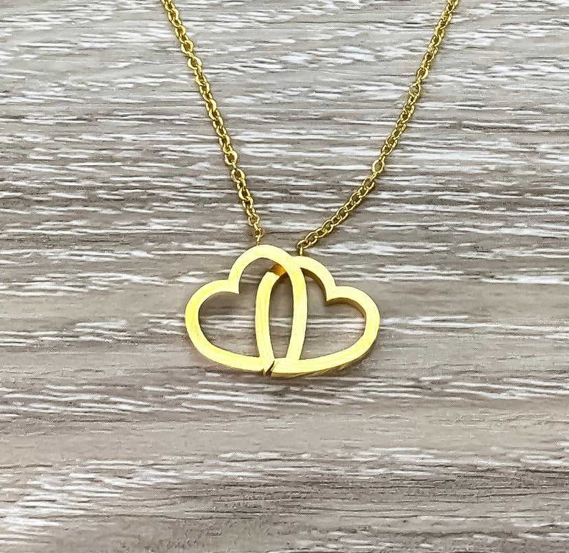 Grandmother Granddaughter Gift, Interlocking Hearts Necklace, Forever Love Gift, Double Hearts Necklace, Mom Necklace for Her