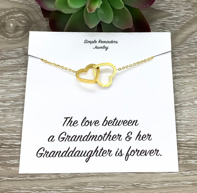 Grandmother & Granddaughter Necklace, Gift for Grandma, Double Heart Necklace, Two Interlocking Hearts Necklace, Birthday Gift