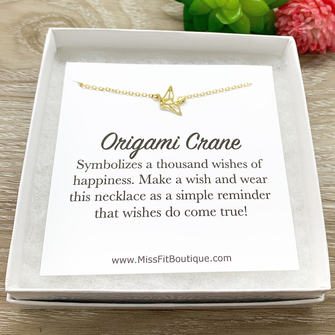 Origami Crane Necklace with Personalized Card, Bird Jewelry, Nature Lover Jewelry, Friendship Necklace, Motivational Gift, Inspirational