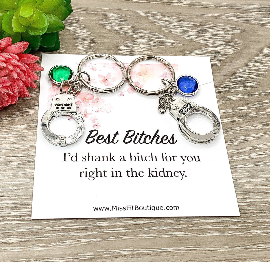 Partners in Crime Keychains, Best Bitches Gift, Handcuffs Matching Necklace Set for 2, Bestfriend Gift, Friendship Keychain, BFF Gift, Squad