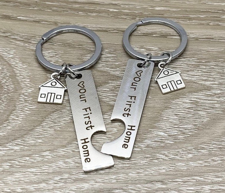 Our First Home Keychains, Matching Keychain Set for 2, Gift for Couples, First Time Homeowners Gift, Housewarming Gift, Gift from Realtor