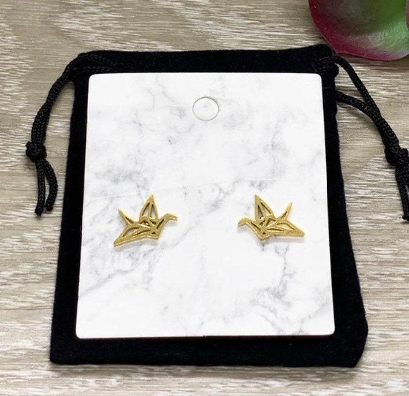 Origami Crane Stud Earrings, Wildlife Jewelry, Cute Bird Earrings, Animal Lover Gift, Love Bird Earrings, Paper Crane Post Earrings