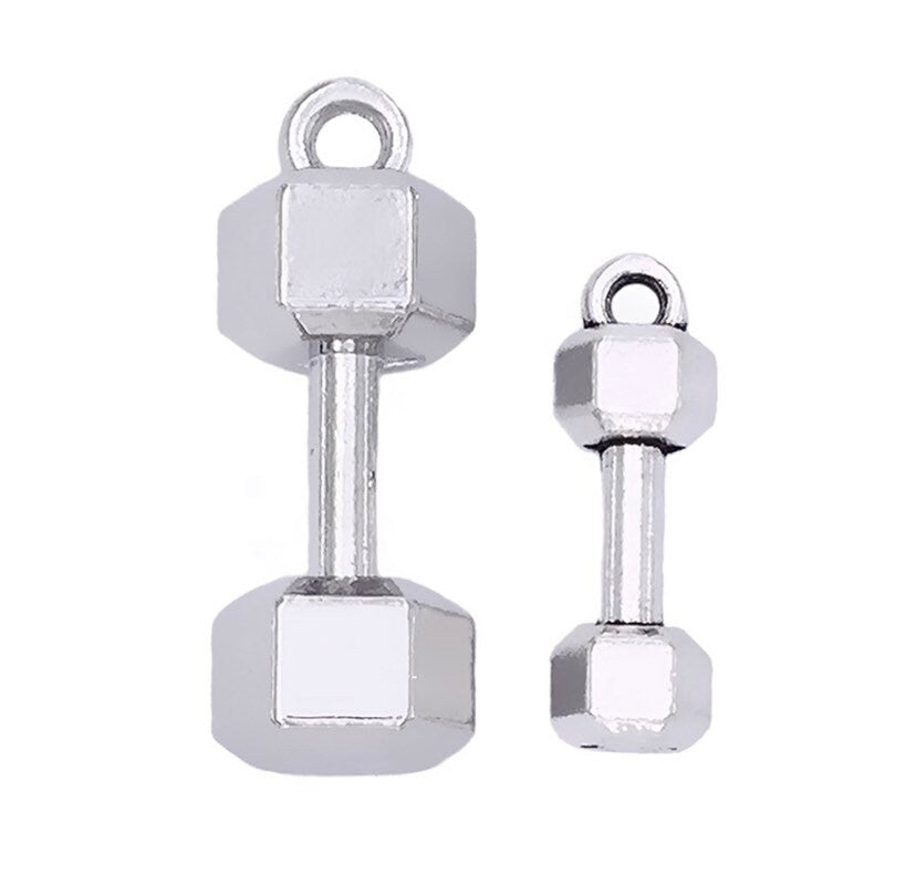 Breloque haltère, Breloque haltérophilie, Breloques poids, Breloques musculation, Breloques fitness, Apprêts à bijoux, Breloque gym, Cadeau de Noël