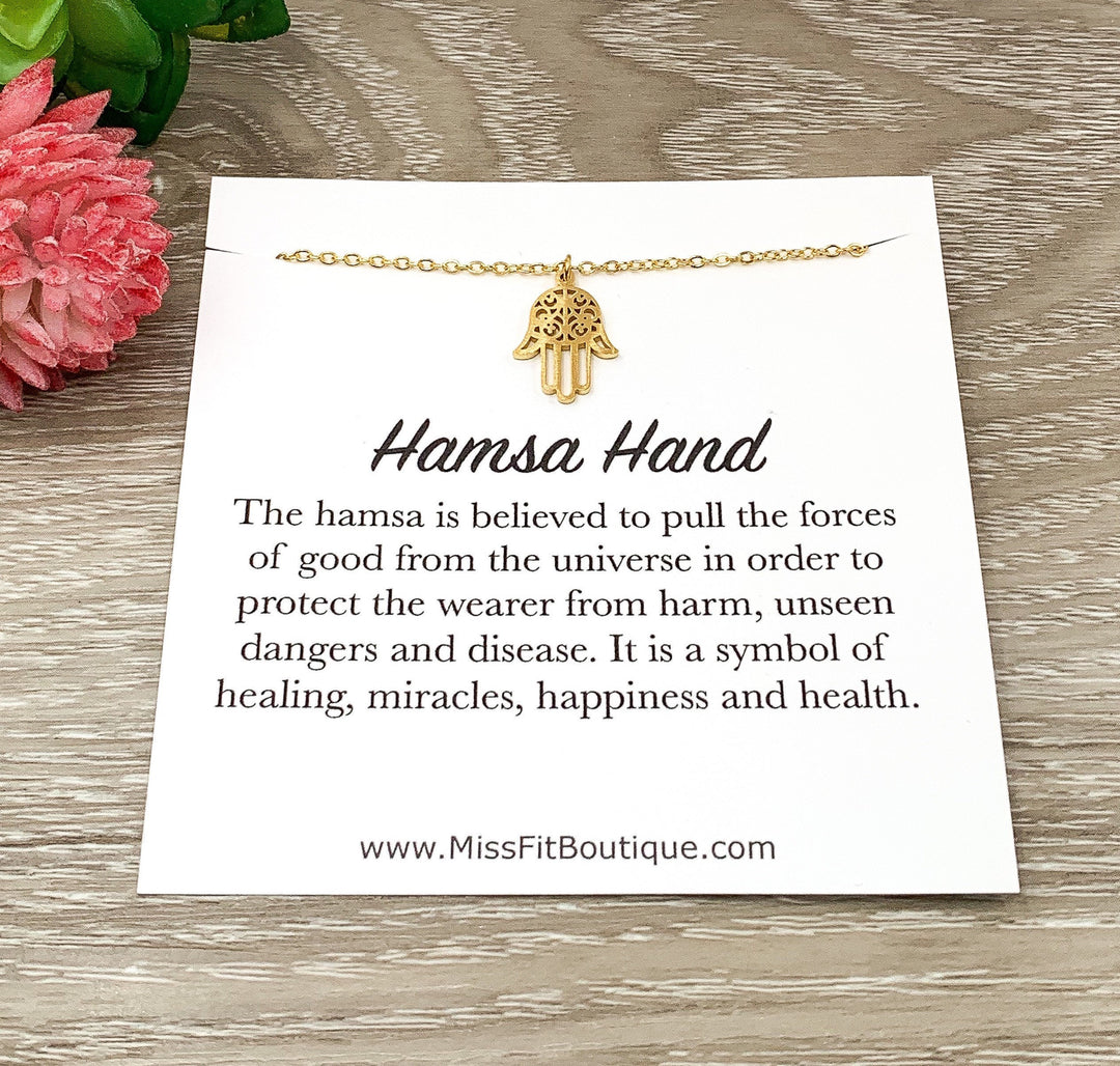 Collier Main de Hamsa en or, cadeau de protection, bijou spirituel, collier Main de Fatima, cadeau de Hanoukka pour elle, porte-bonheur d'énergie positive