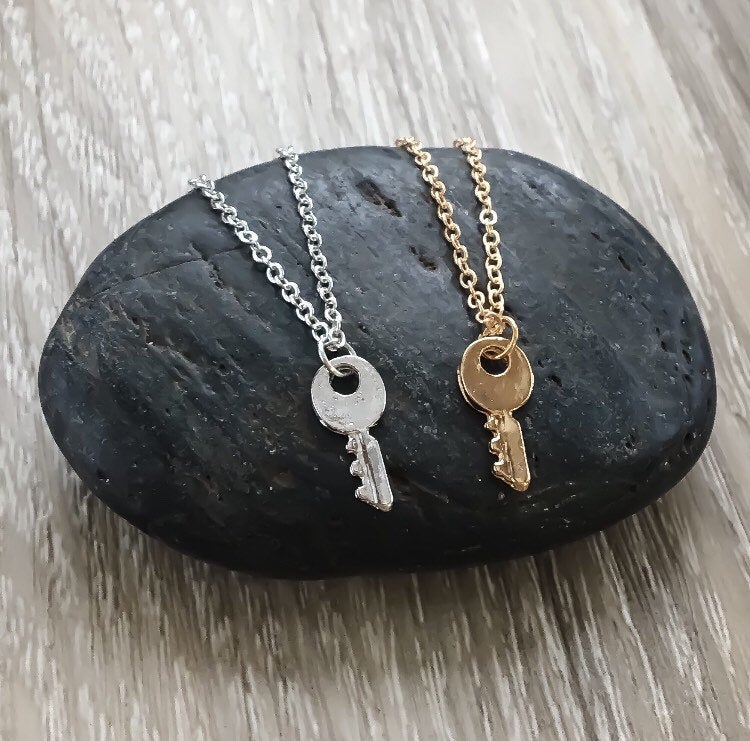 Collier Clé Mini, Bijou Minimaliste, Pendentif Clé Squelette, Collier d'Amitié, Cadeau Meilleure Amie, Bijou Souvenir Simple, Collier Meilleure Amie