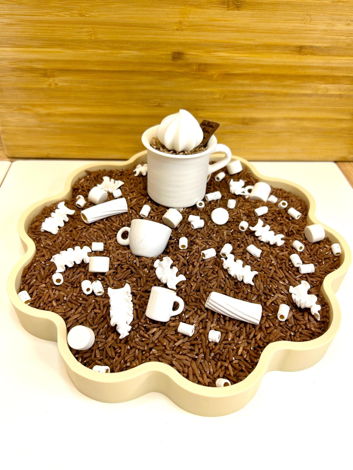 This Hot Cocoa / Hot Chocolate Sensory Filler Mix is thoughtfully curated for pretend play, scooping, pouring, and imaginative small-world fun.