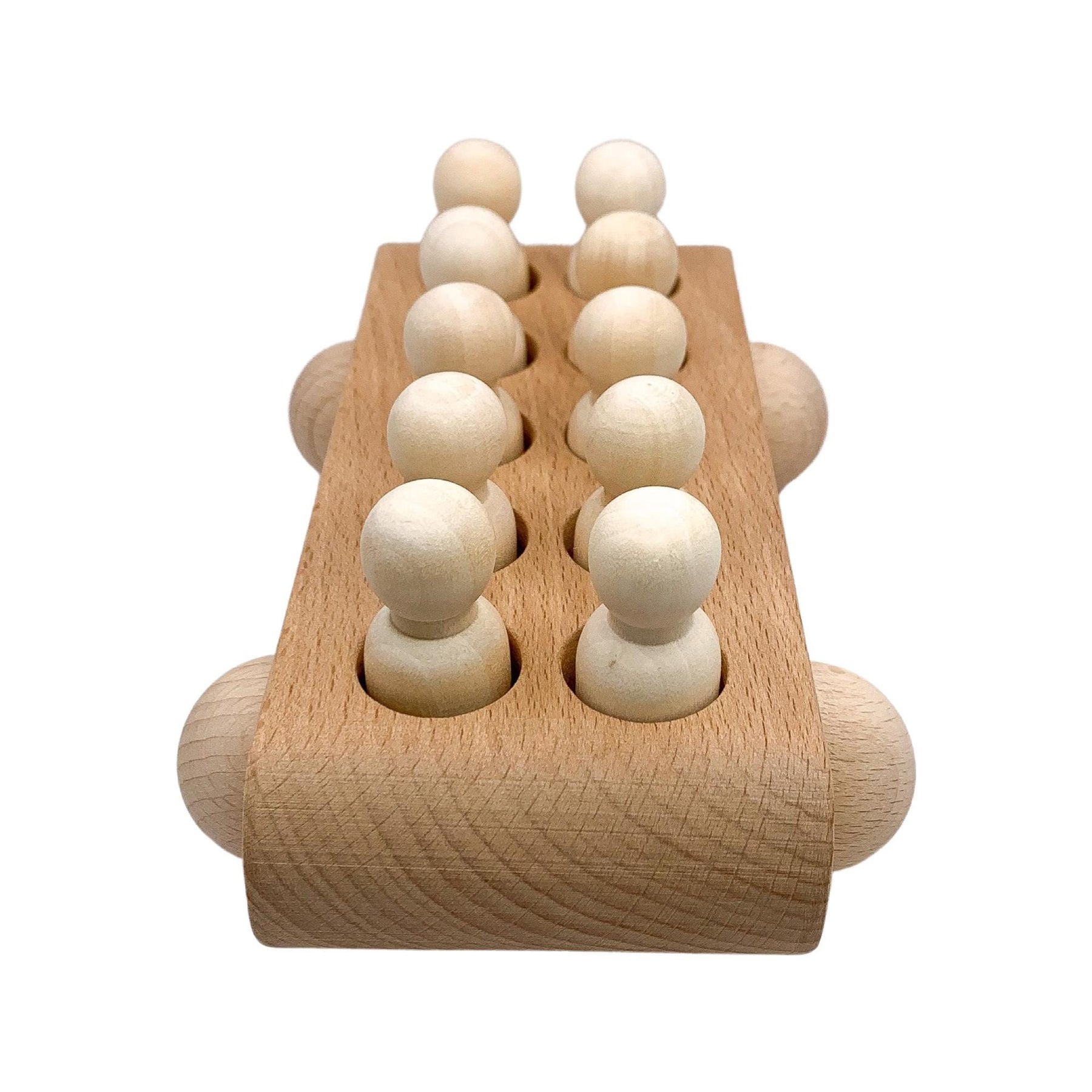 Natural Beechwood Wooden Bus with 10 Peg Dolls | Montessori Toy | Open-Ended Play | Waldorf Inspired Wooden Vehicle | Handmade Kids Gift