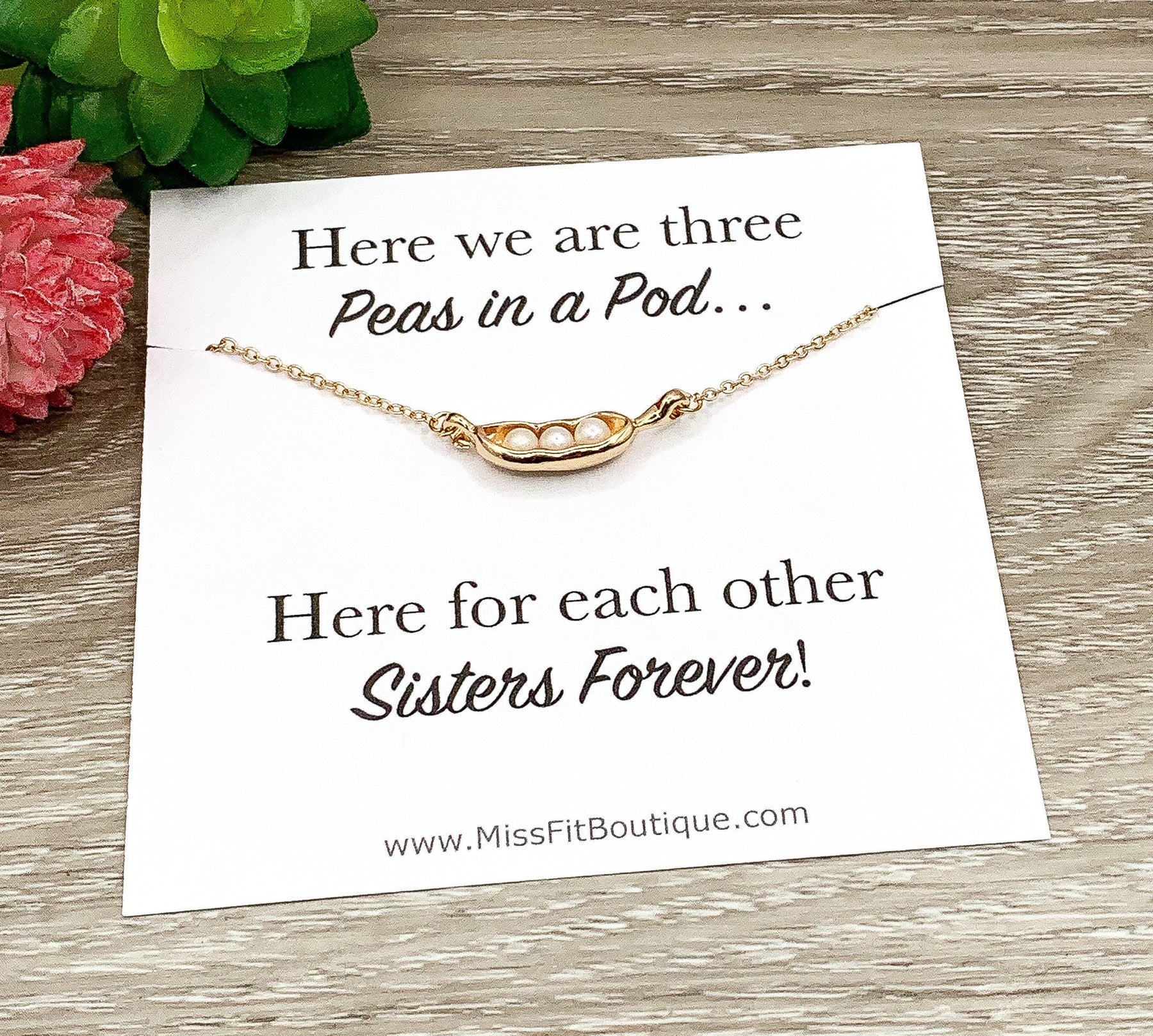 Collier « Trois pois dans une cosse », Bijou de perles unique, Collier cosse de pois, Cadeau pour sœurs, Collier 3 sœurs, Cadeau pour petite sœur, Sœur
