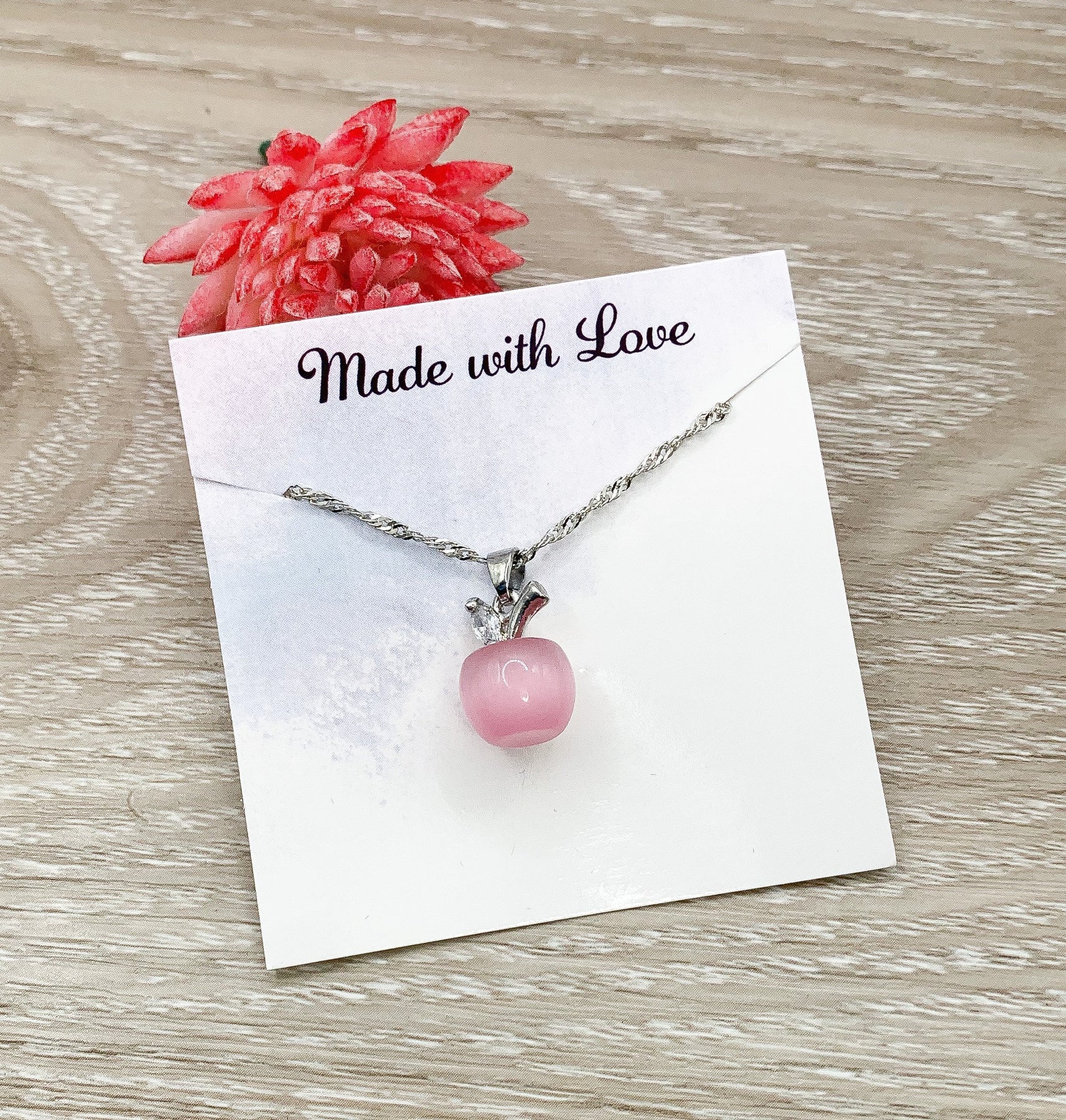 Collier Pomme, Collier Pomme en Opale Mini, Bijou Pomme, Collier Fruit, Collier Professeur, Bijou d'Automne, Cadeau de Rentrée des Classes