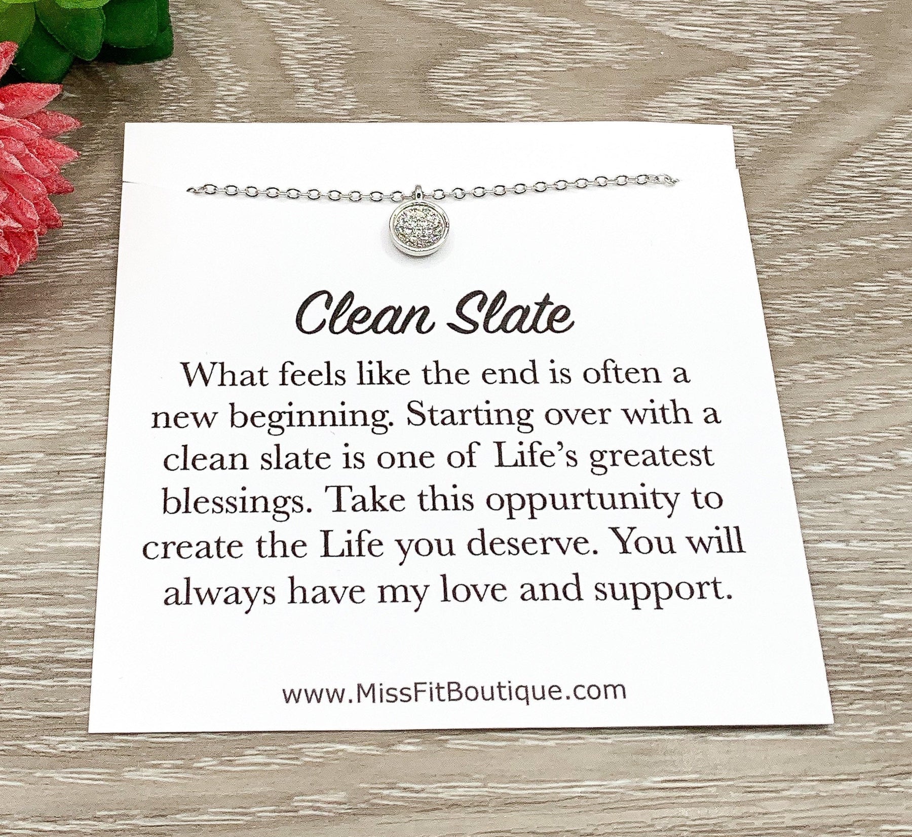 Collier « Table rase », cadeau pour un nouveau départ, collier avec pendentif solitaire en argent sterling et zircon cubique rond, cadeau de rupture pour elle, cadeau d'encouragement
