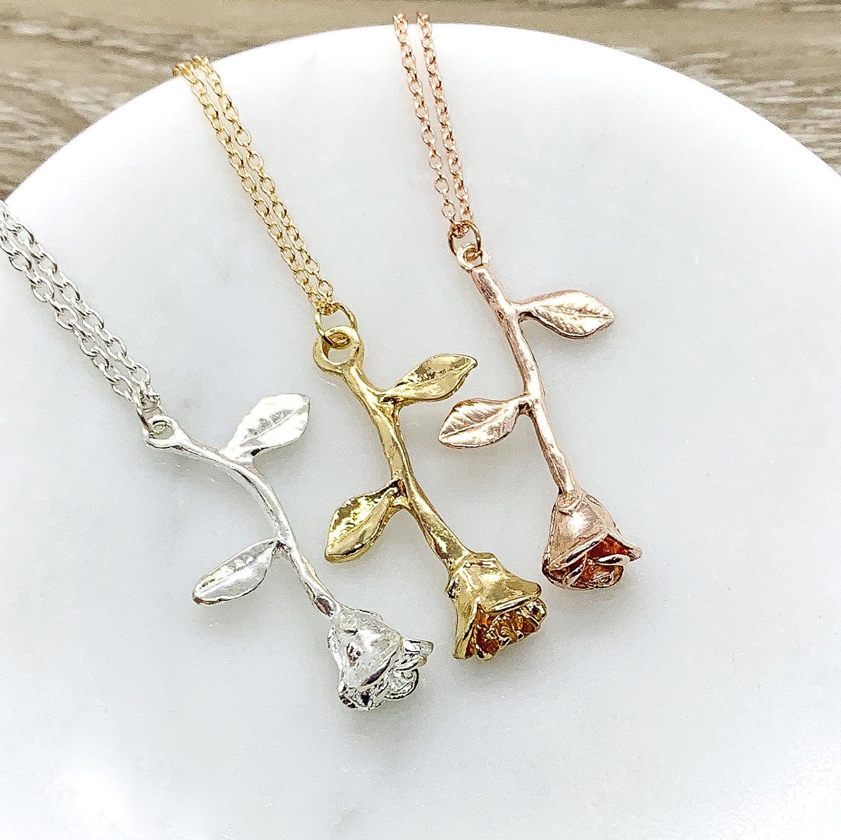 Dainty Rose Necklace, Rose Gold Flower Jewelry, Sweet Flower Necklace, Floral Jewelry, Nature Gifts, Gift from Friend, Meaningful Gift