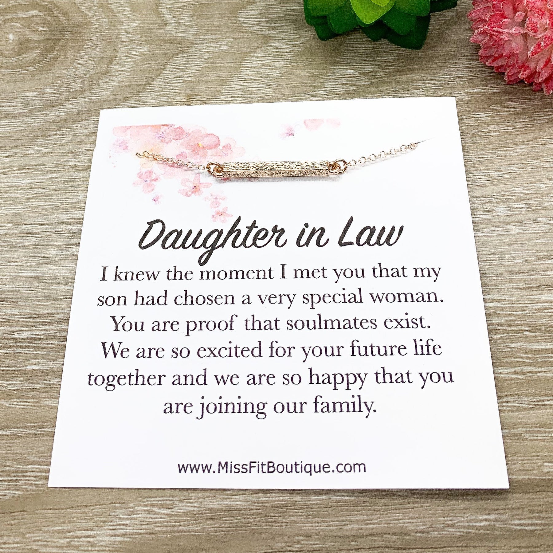 Collier Belle-Fille, Collier Barre en Or Rose, Cadeau de la Mère du Marié à la Mariée, Bijou Symbolique, Cadeau de la Belle-Mère