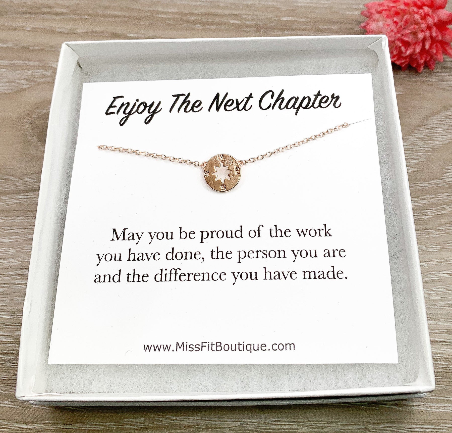 Carte « Profitez du prochain chapitre », Collier boussole délicat, Cadeau de fin d'études pour elle, Cadeau de promotion, Cadeau d'adieu, Cadeau de départ pour une fille