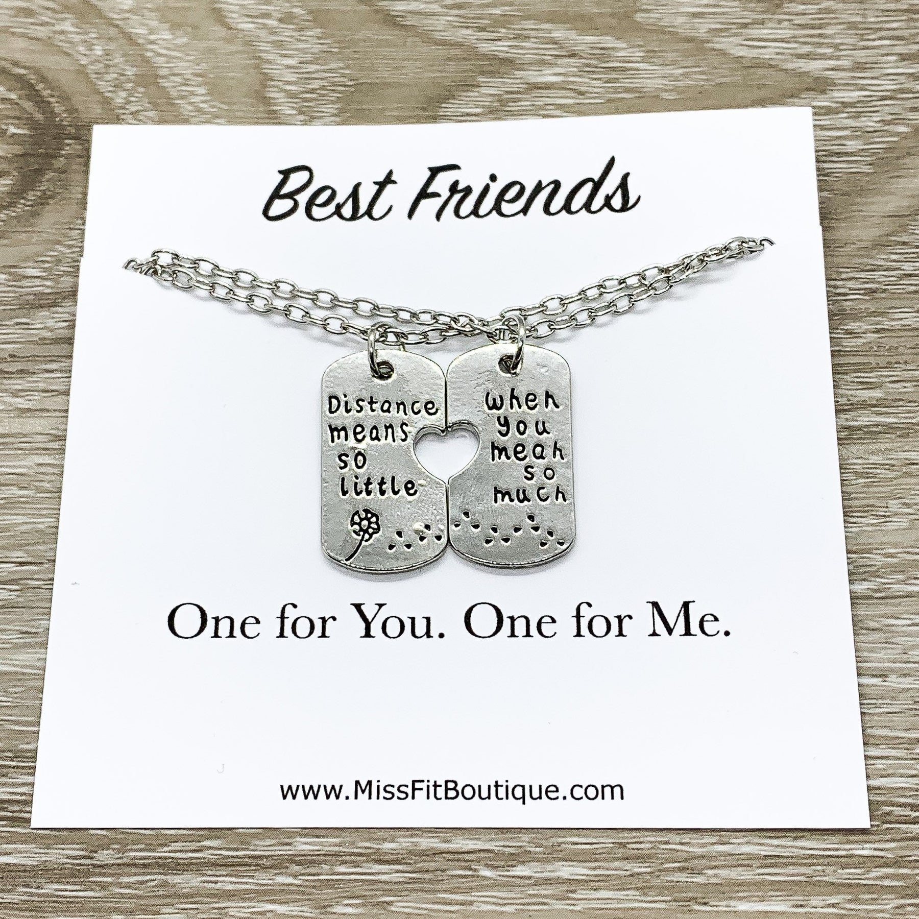 Ensemble de colliers d'amitié assortis pour 2, citation « La distance compte si peu », cadeaux d'amitié, cadeau pour meilleure amie, cadeau pour une amie proche, cadeau de départ