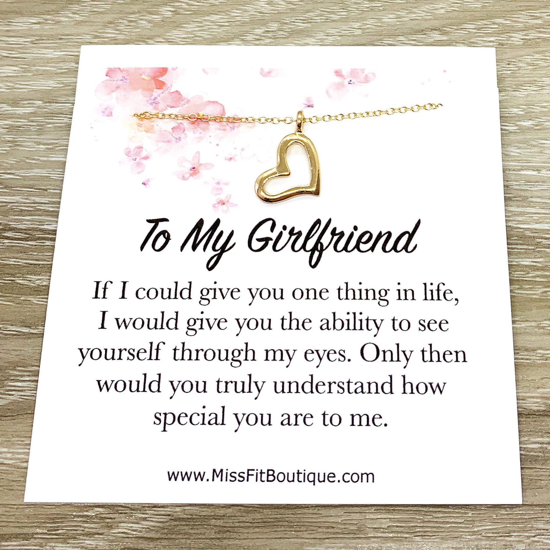 Girlfriend Gift, Dainty Heart Necklace, Anniversary Gift, Gift from Boyfriend, Heartfelt Card, Sentimental Gift, Girlfriend Birthday Gift