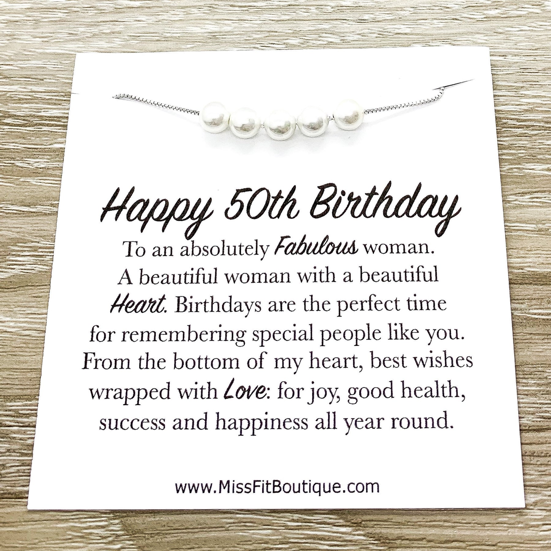 Collier en argent sterling et perles, carte personnalisée, cadeau pour un 50e anniversaire. Bijou pour femme, idéal pour célébrer ses 50 ans.