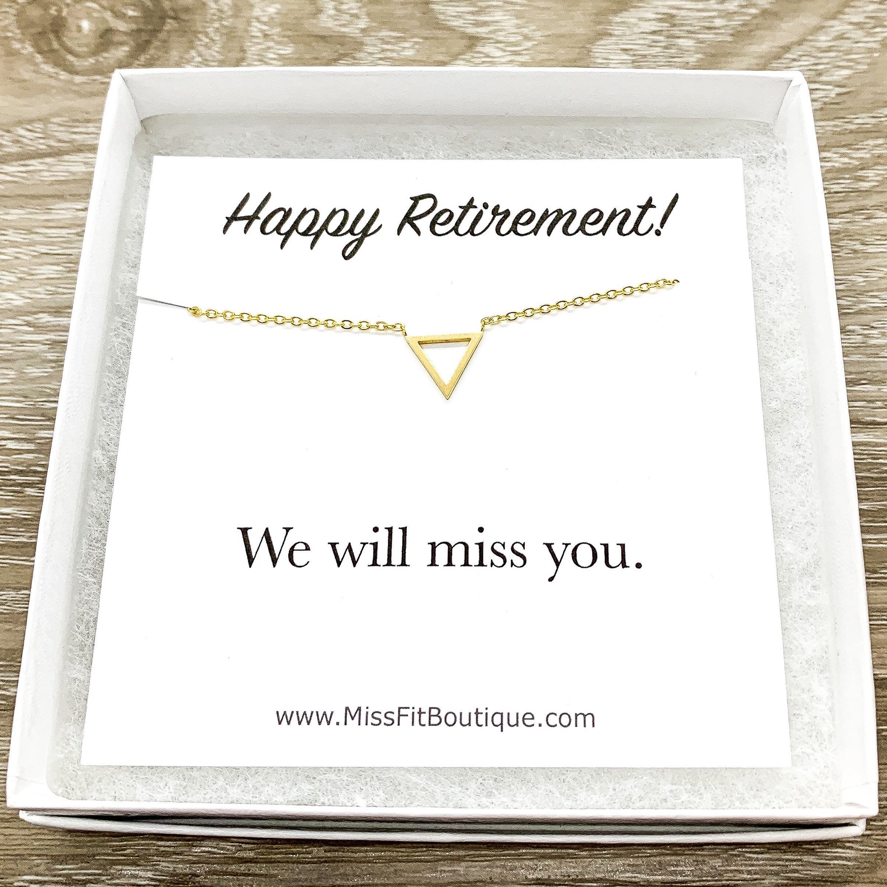 Carte de bonne retraite, Collier triangle fin, Pendentif délicat, Cadeau de nouveau départ, Collier pour femme, Cadeau pour une amie, Collier à superposer