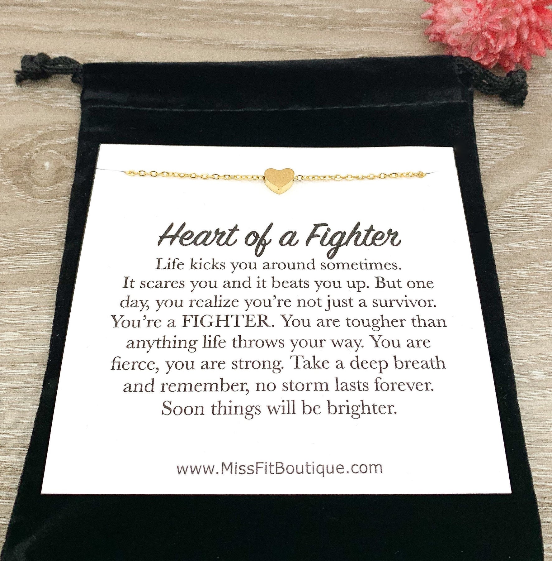 Citation « Cœur de combattante », Cadeau de force, Collier petit cœur, Cadeau pour survivante, Cadeau personnalisé pour femme, Cadeau d'encouragement