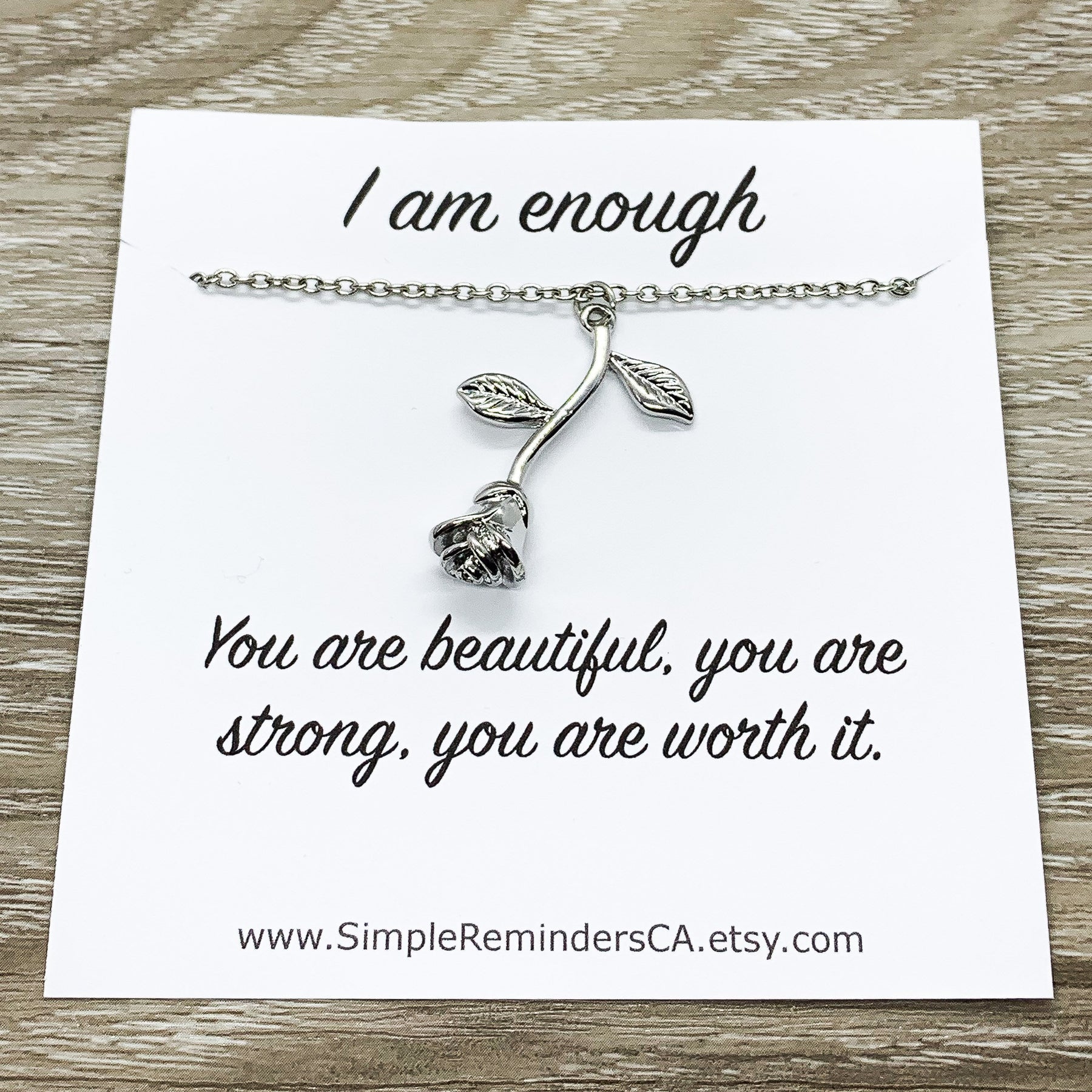 I Am Enough Card, Dainty Rose Necklace, Rose Gold Flower Jewelry, Floral Jewelry, Nature Gifts, Gift from Friend, Meaningful Gift