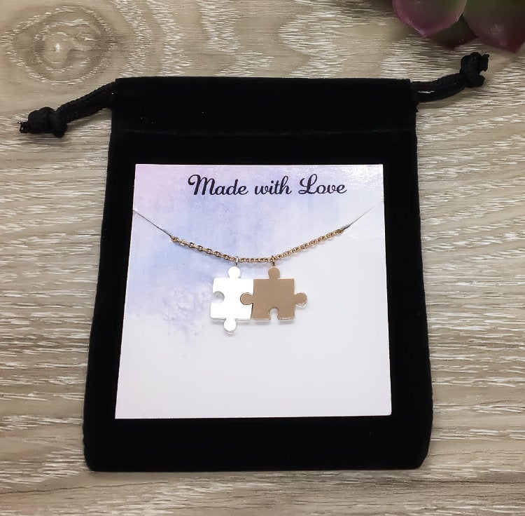 Collier puzzle à double pièce, cadeau de la meilleure amie, cadeau BFF, collier d'amitié, cadeau pour sœur de cœur