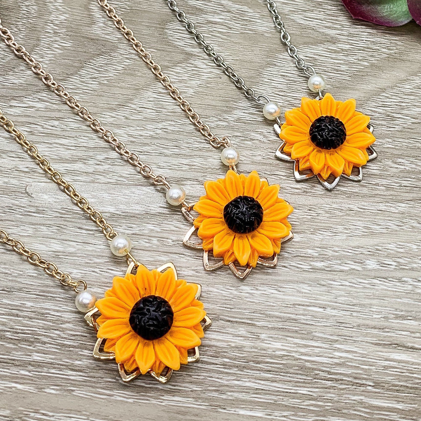 Large Sunflower Necklace, Yellow Flower Jewelry, Friendship Necklace, Floral Jewelry, Nature Gifts, Best Friend Gift, Necklace with Meaning