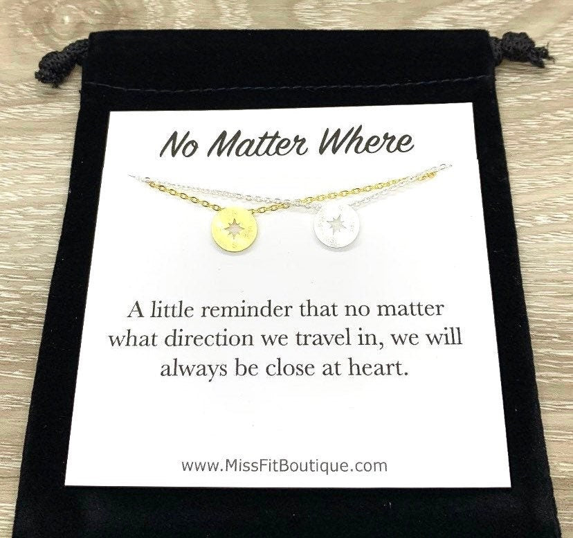 Peu importe où vous allez, ensemble de colliers boussole pour 2 personnes, cadeau de votre meilleure amie, colliers d'amitié assortis, cadeau de départ, amies à distance