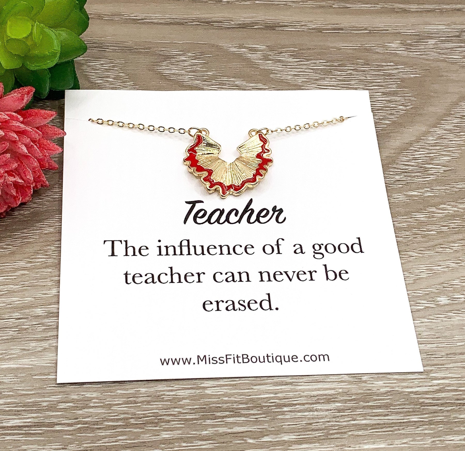 Pencil Shaving Necklace, Red Pencil Pendant, Teacher Appreciation Gift, Thank You Card from Parent, Teacher Retirement Gift, Art Teacher
