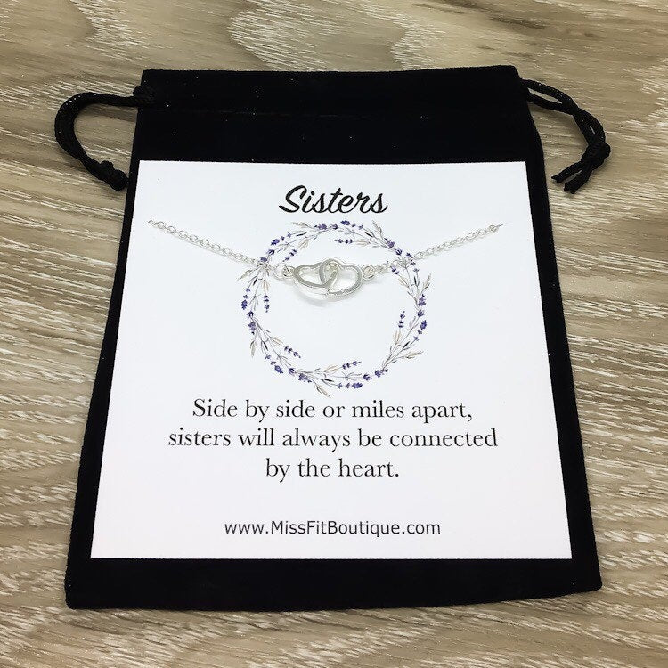 Collier pour sœurs, pendentif double cœur entrelacé, bijou cœur, cadeau d'anniversaire pour une amie, côte à côte ou à des kilomètres de distance