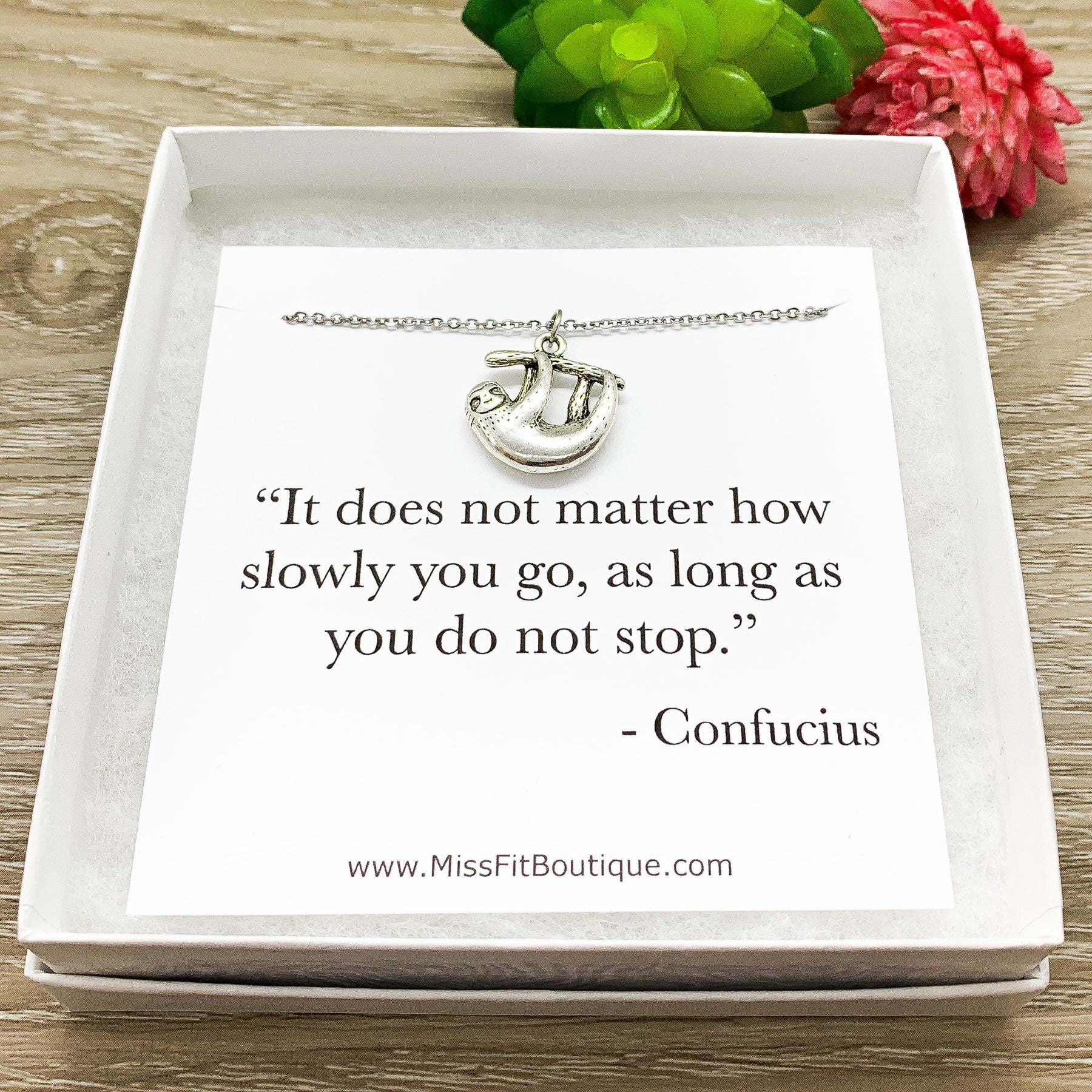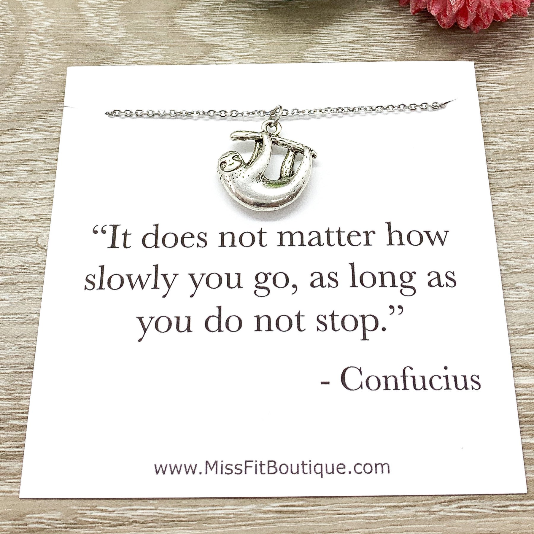 Collier paresseux, pendentif paresseux en argent délicat, bijou pour amoureux des animaux, joli collier, bijou unique, cadeau pour fille, citation inspirante