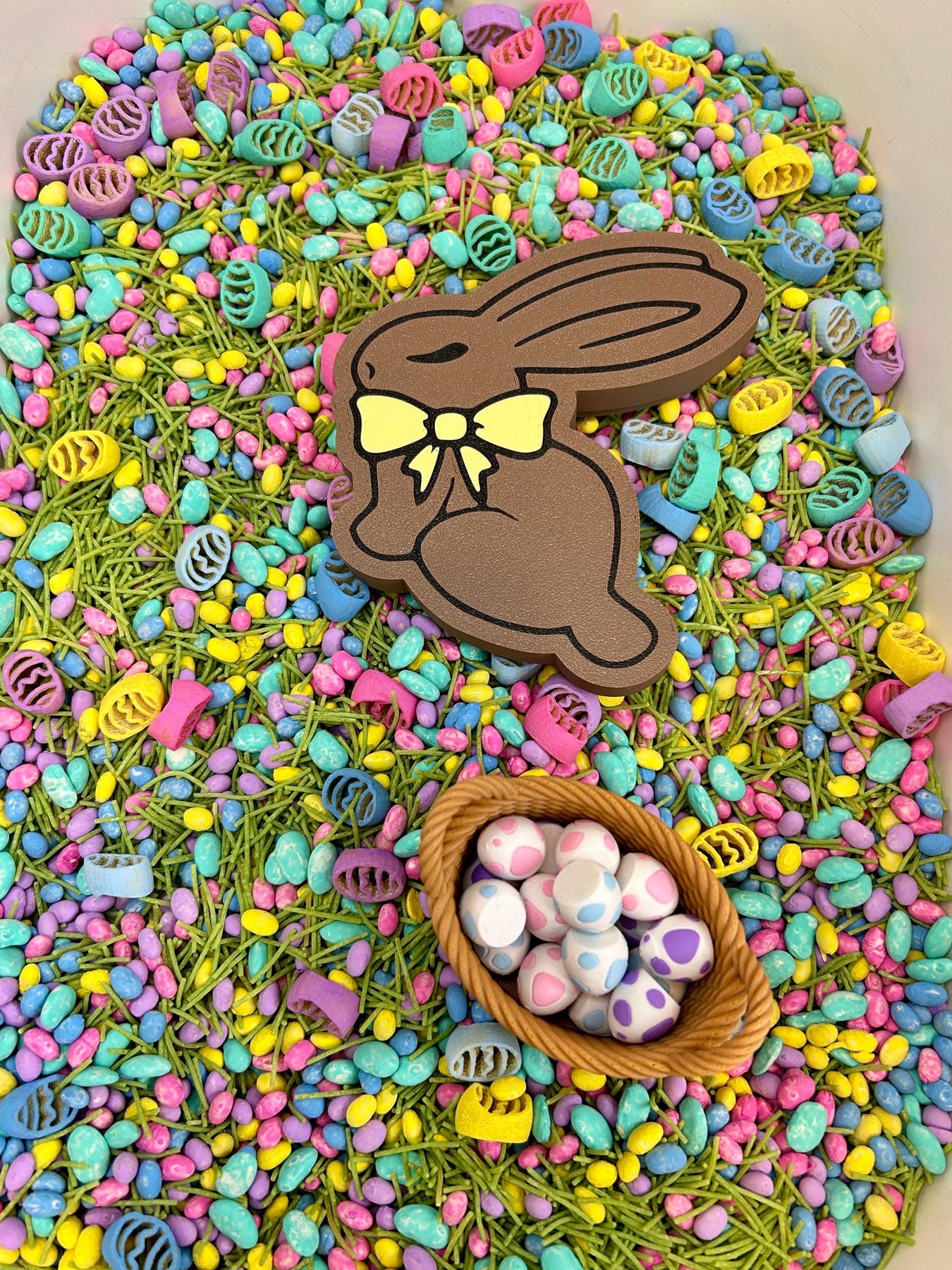 Add a fun and interactive touch to your spring sensory play with this adorable miniature easter basket with mini 3D printed eggs.