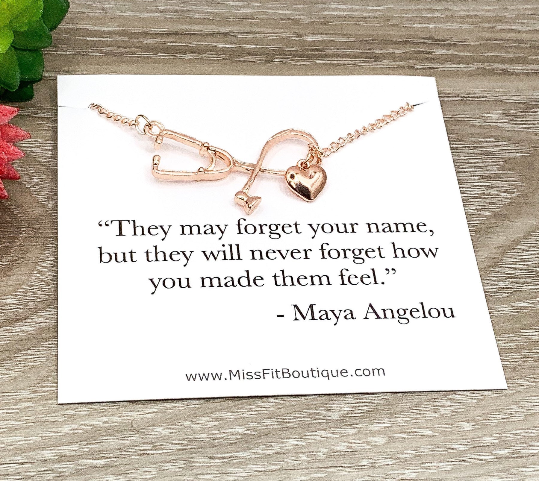 Collier stéthoscope en or rose, citation de Maya Angelou, cadeau de remerciement pour une infirmière, cadeau de remerciement d'un patient, cadeau pour une étudiante en soins infirmiers, témoignage de gratitude