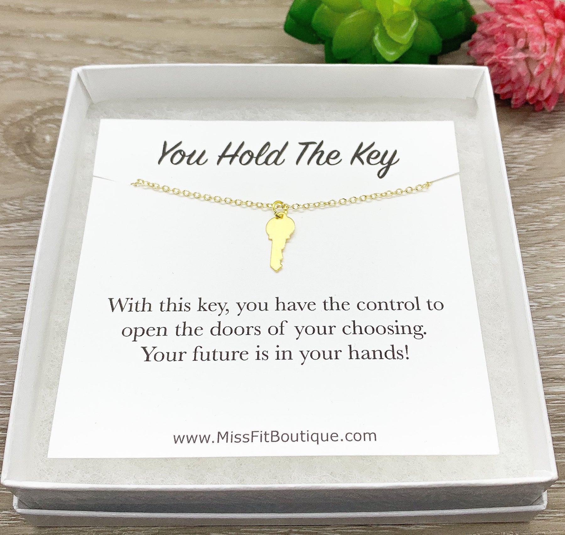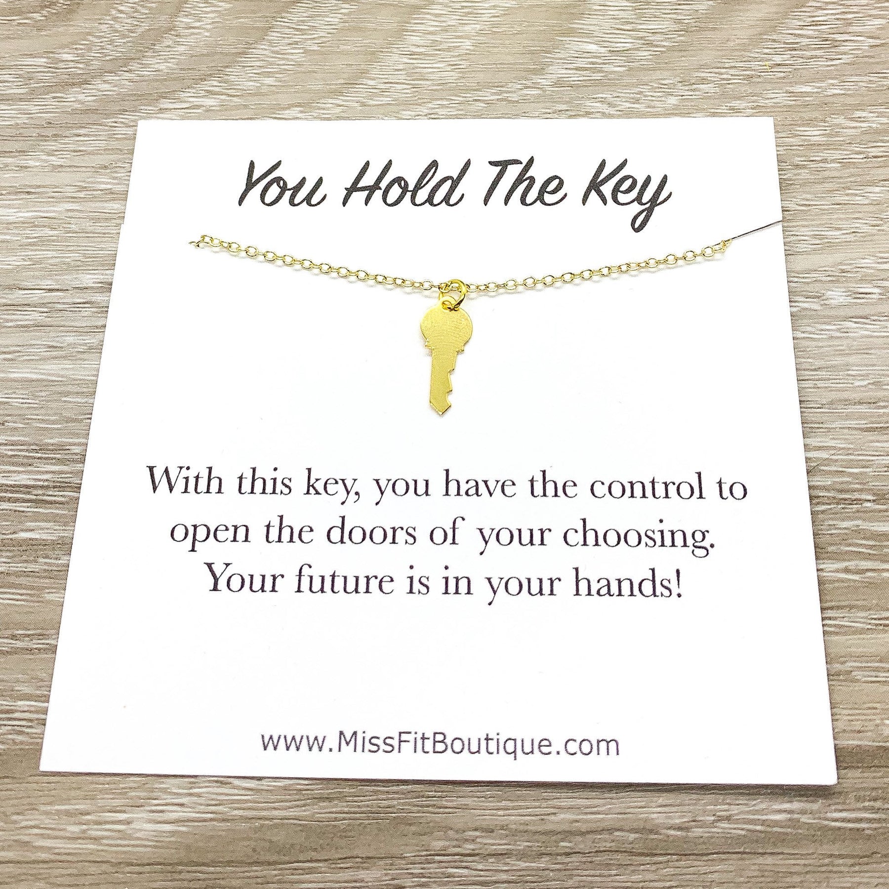 Tiny Gold Key Necklace, You Hold The Key Card, Gift for Student, Friendship Necklace, Key Shaped Pendant, Skeleton Key Charm, Student Gift