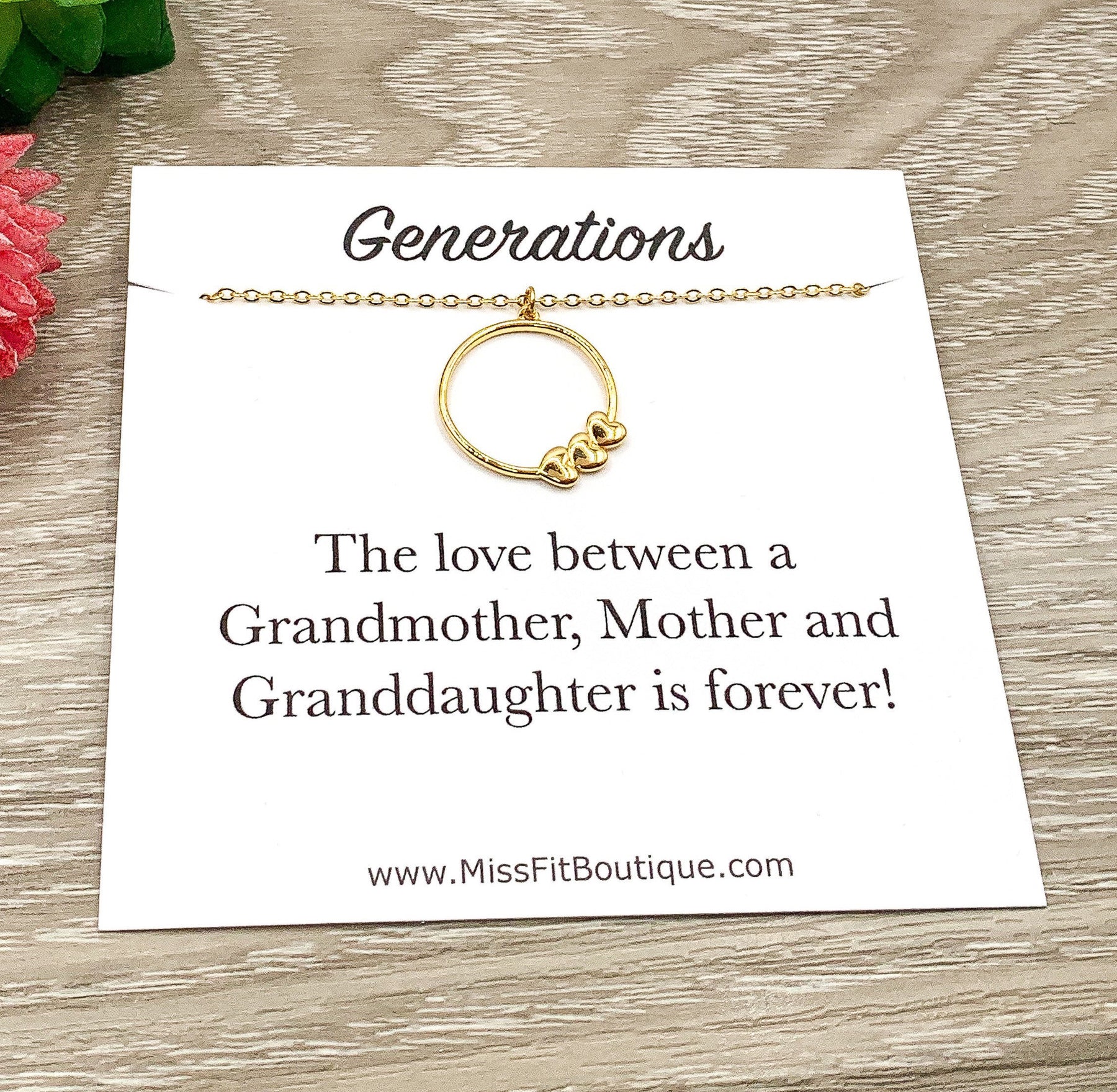 Circle with 3 Hearts Necklace with Card, Three Generations Gift, Granddaughter Mother Grandmother, Grandma Necklace, Gift from Granddaughter