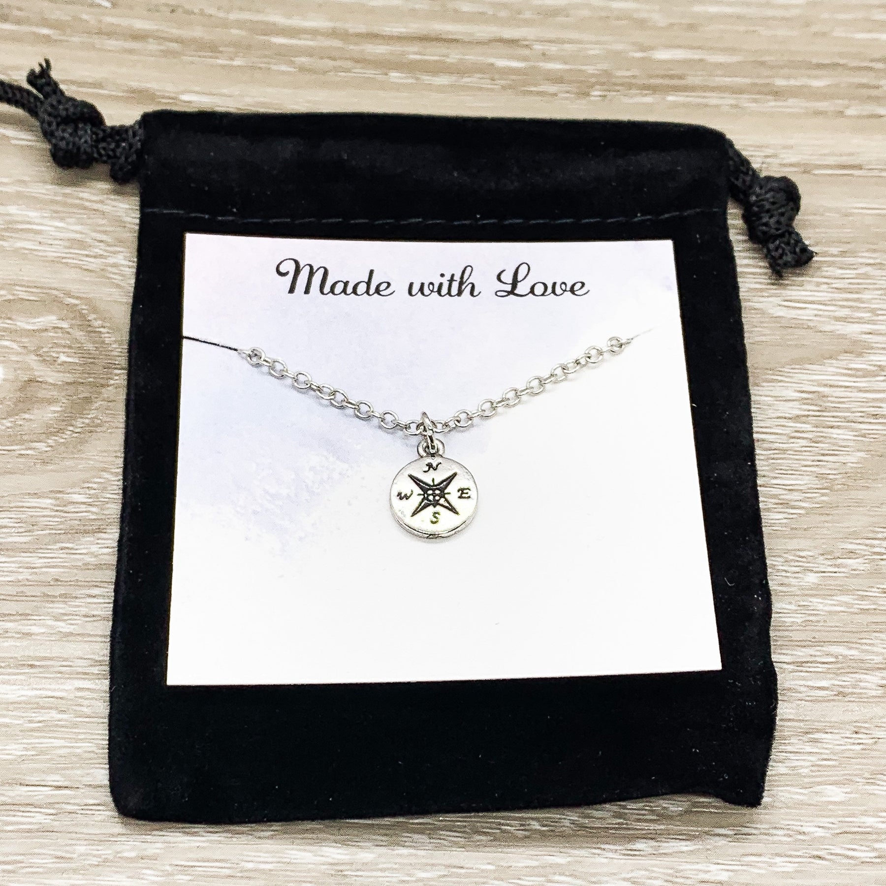Compass Charm Necklace, Long Distance Friendship Card, Gift for Best Friend, Compass Jewelry, Bestie Gifts, Gift Exchange for Her