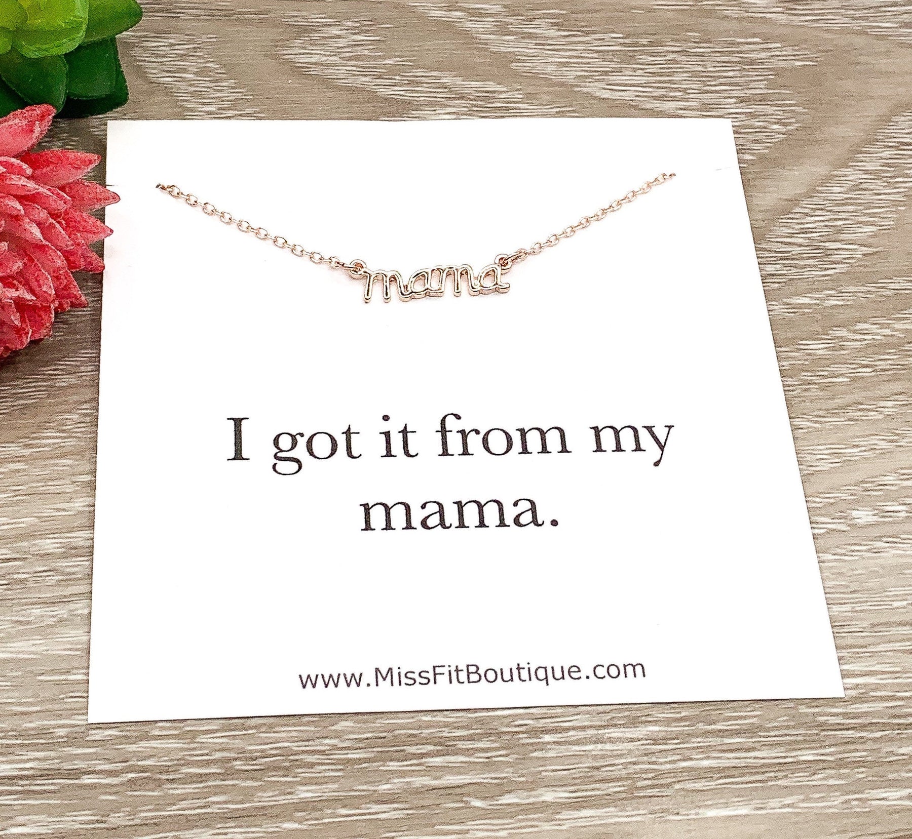 Dainty Mama Necklace, Got It From My Mama Card, Gift from Daughter, Mother’s Day Jewelry, Mom Gift from Kids, Mama Christmas for Her