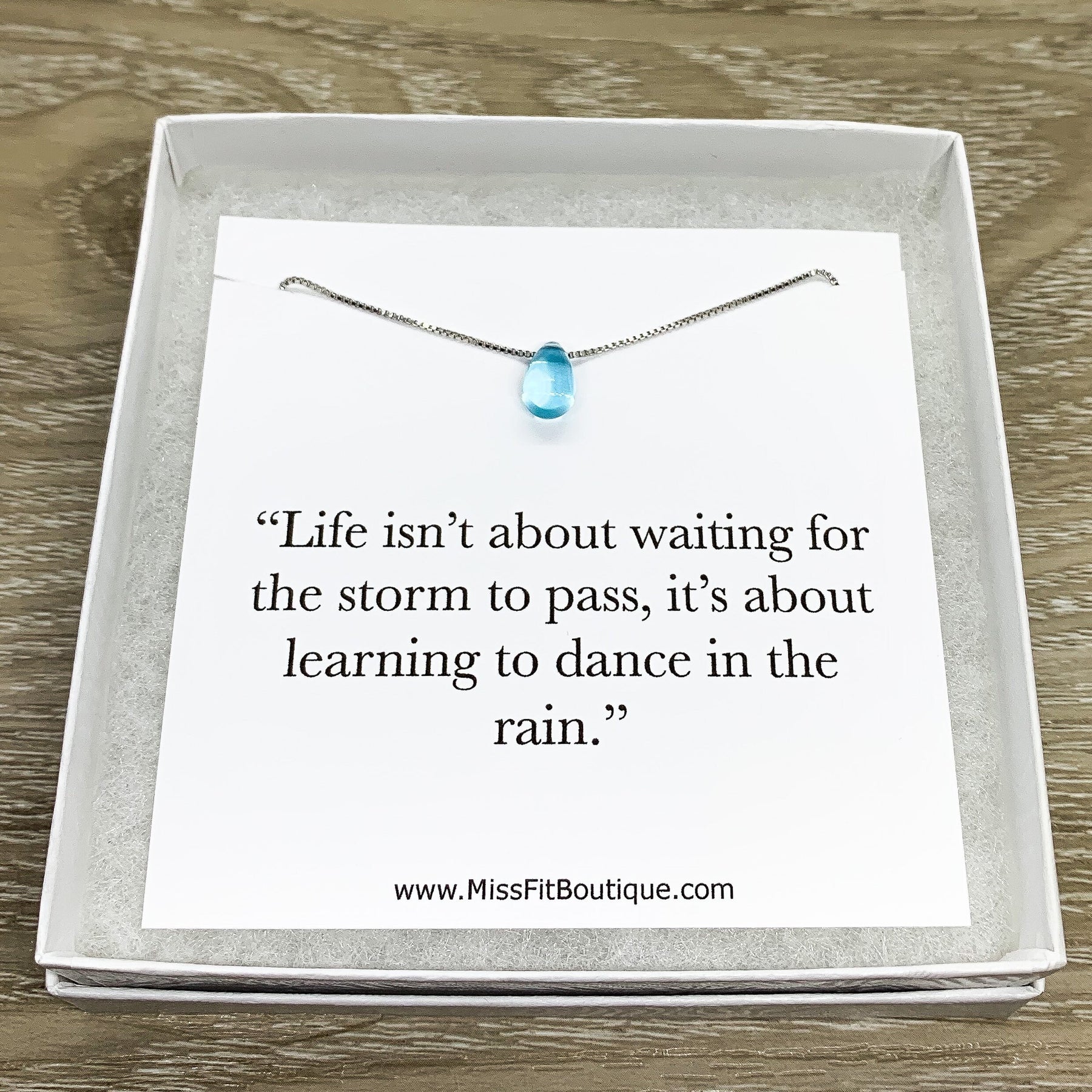 Dancing in the Rain Card, Tiny Blue Tear Drop Necklace, Strength Gift, Water Drop Jewelry, Gift for Daughter, Uplifting Gift for Her