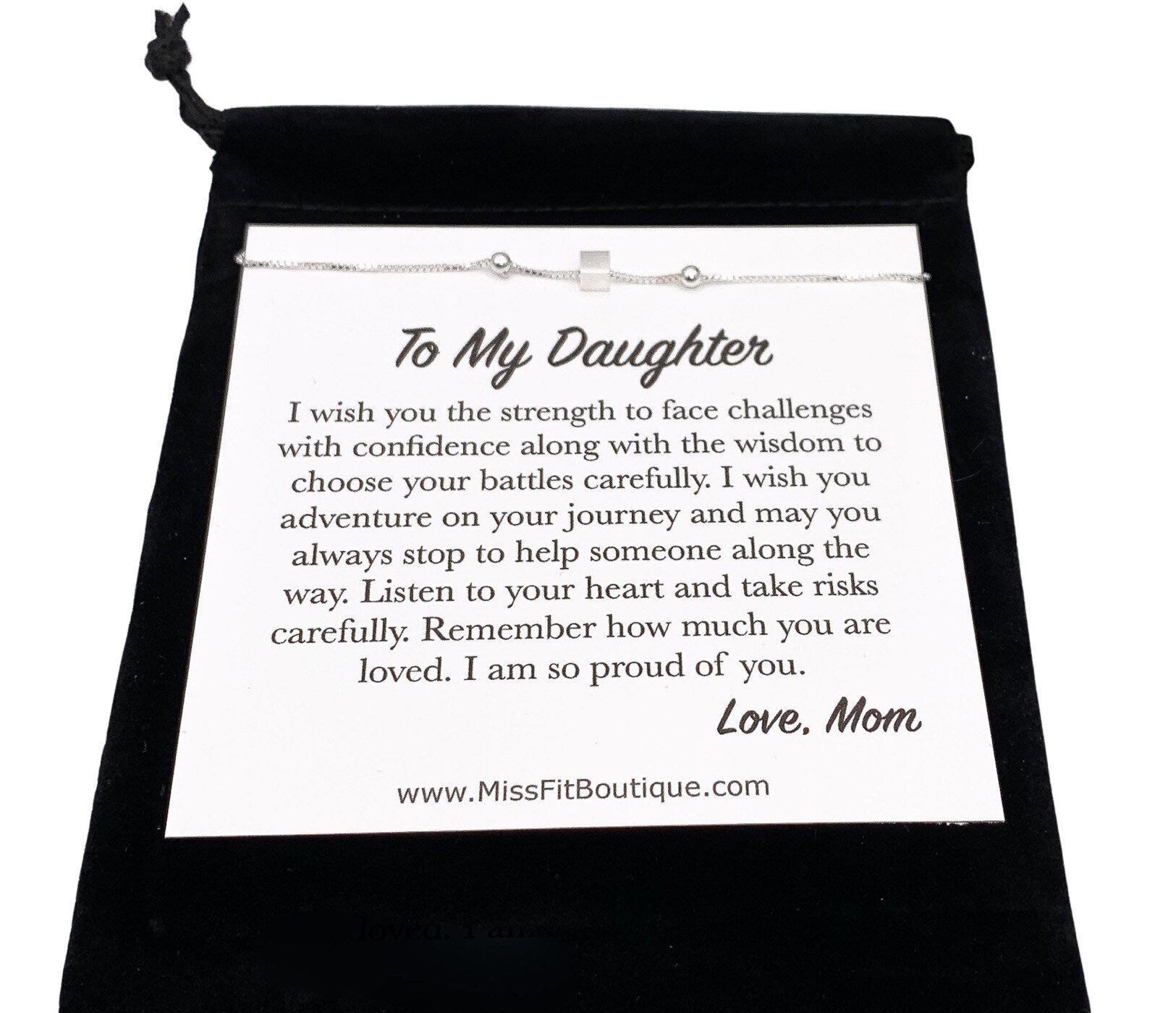 Daughter Jewelry Gift, Tiny Cube Bracelet, Gift from Mother, Daughter Gift from Mom, Loving Mother Card, Graduation Gift, Birthday Gift