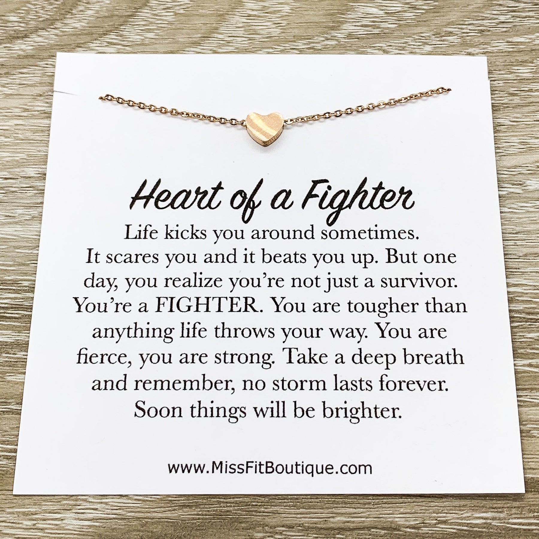 Heart of a Fighter Necklace, Dainty Heart Pendant, Inspirational Gift, Survivor Gift, Strength Necklace, Simple Reminder Gift