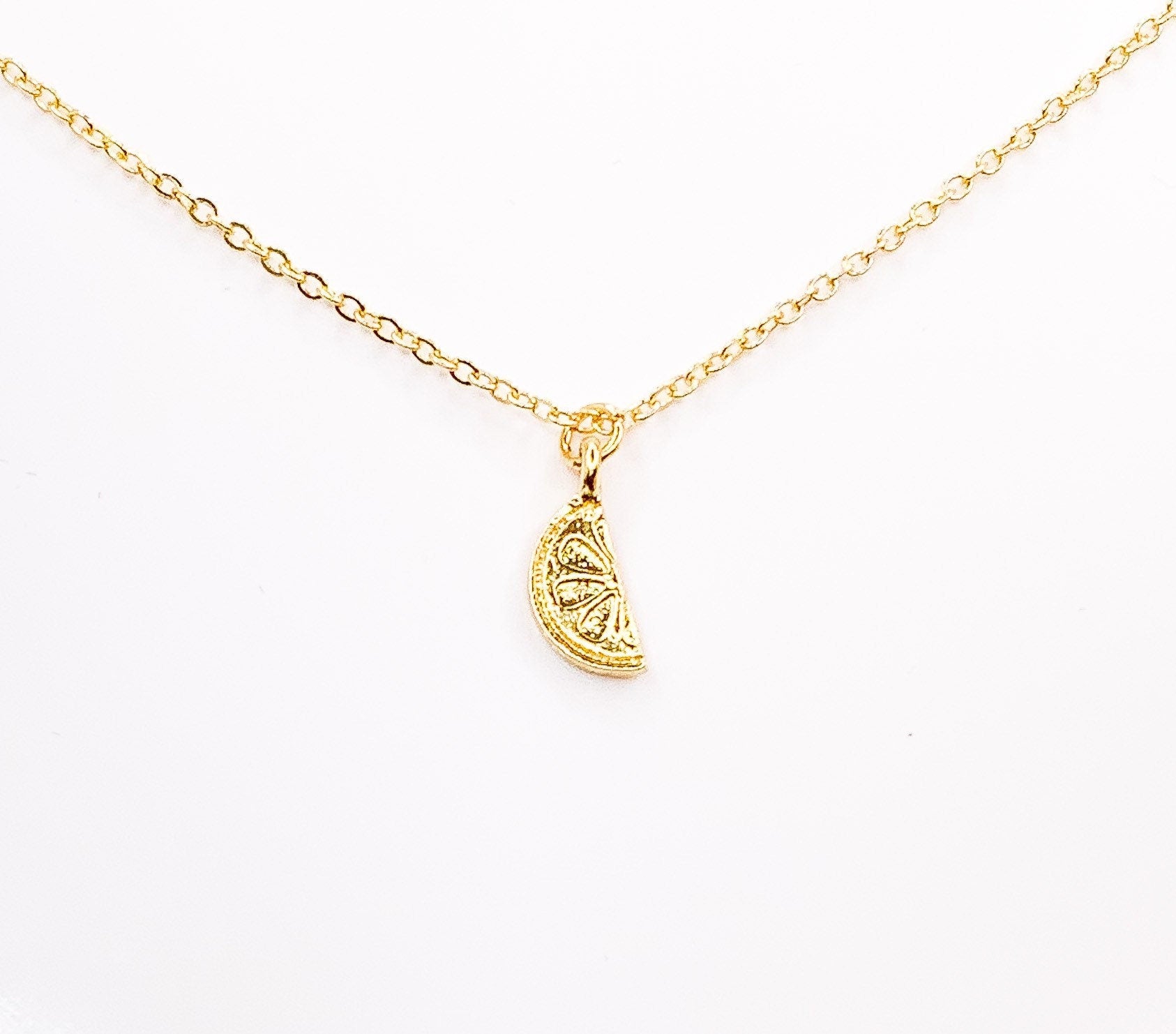 Lemon Necklace, Life is a Squeeze Card, Tiny Lemon Slice Pendant, Uplifting Gift for Her, Citrus Jewelry, Fruit Necklace, Summer Jewelry