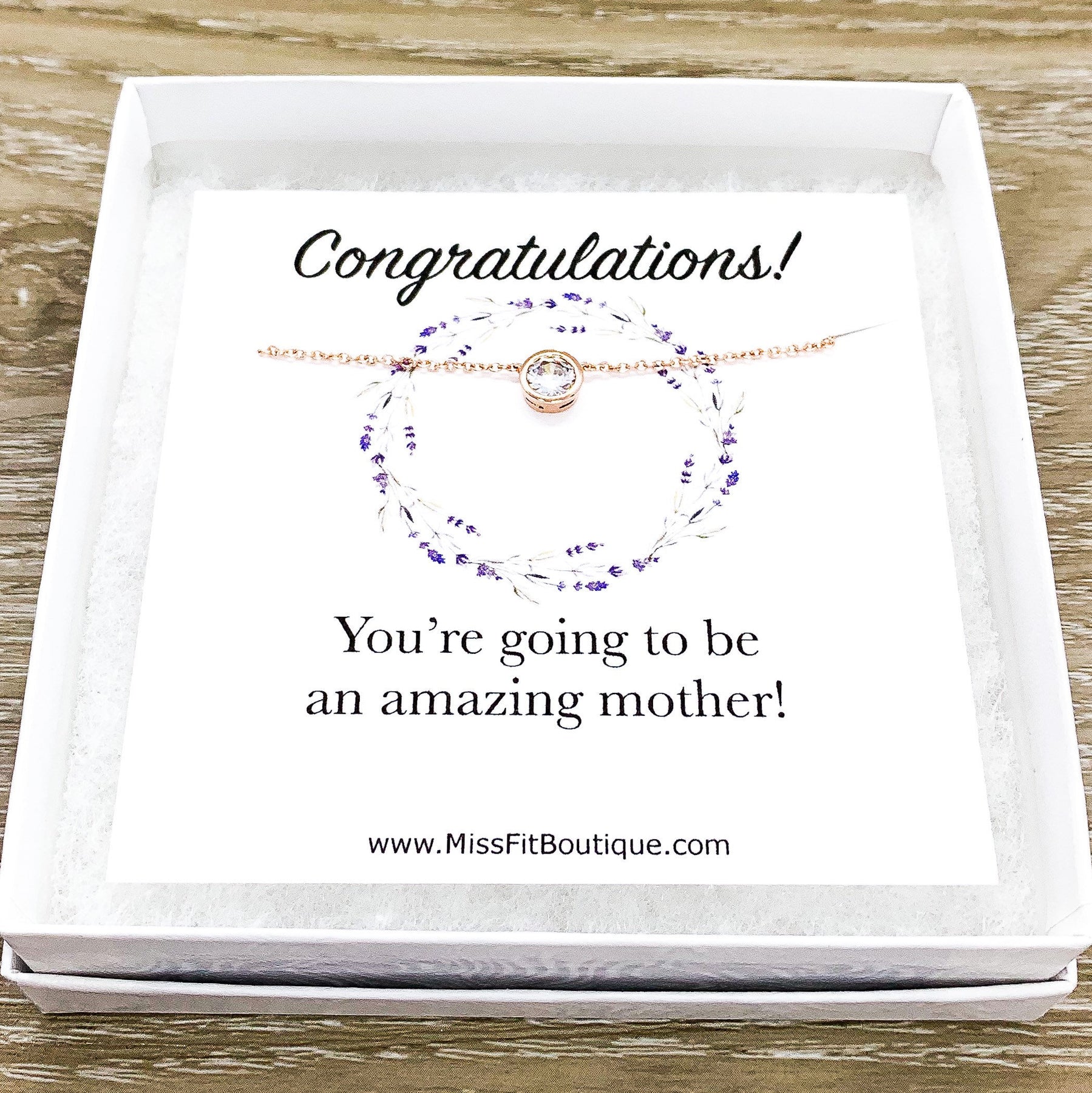 New Baby Gift, Congratulations Card, Tiny Round Crystal Necklace, Rose Gold Solitaire Pendant, New Mama Gift, Amazing Mother, Pregnancy