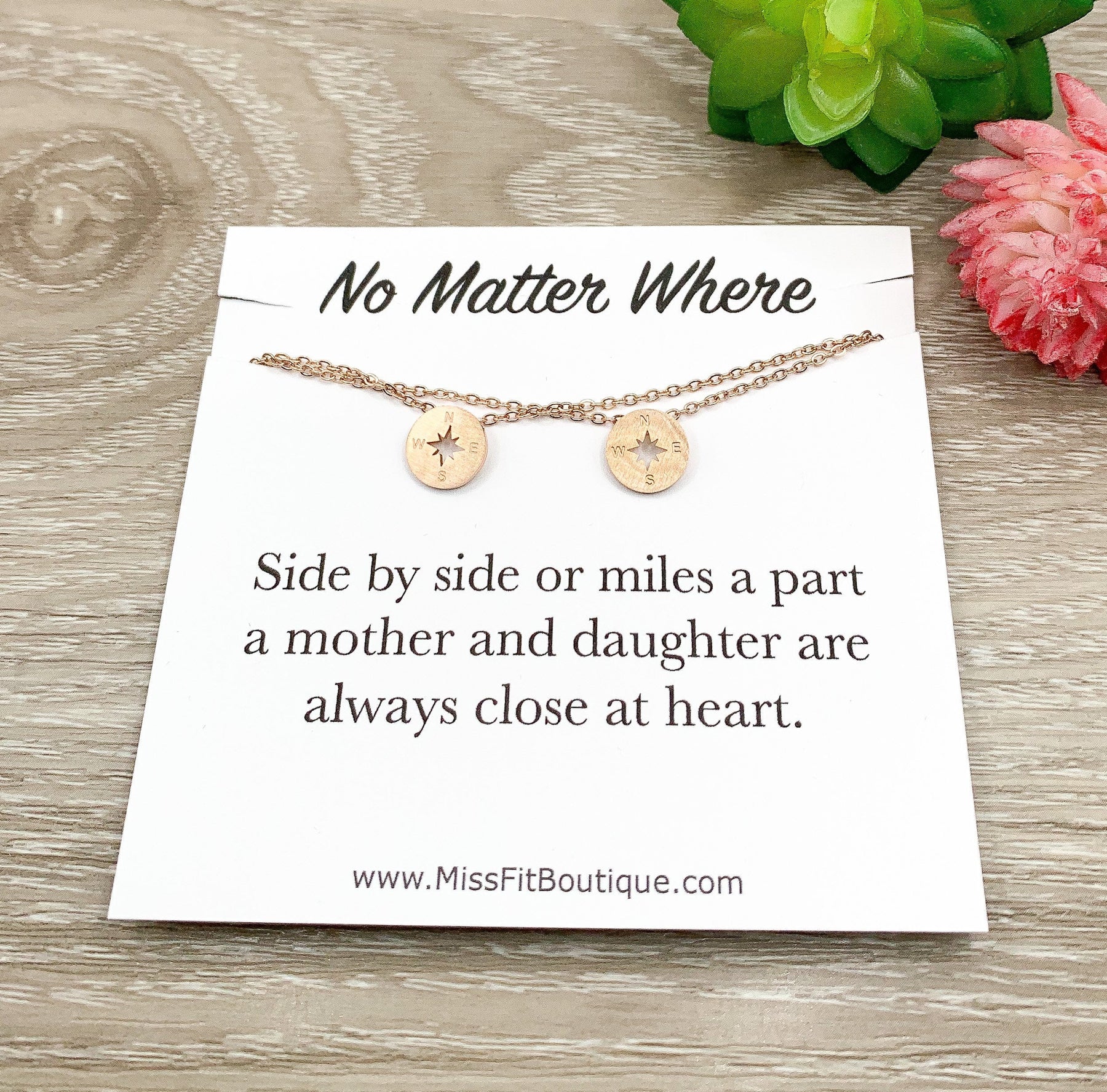 No Matter Where, Mother Daughter Set for 2, Tiny Compass Matching Necklace, Side by Side, Mom Gifts, Motherhood Jewelry, Mother’s Day Gift